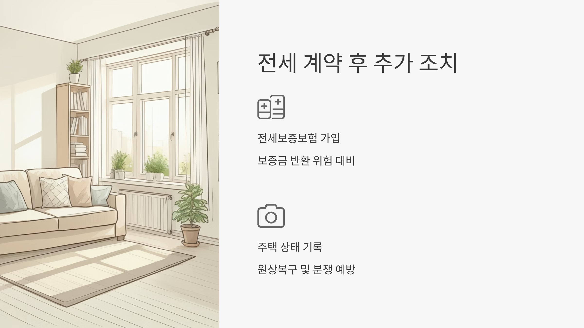 입주 전 주택 상태를 사진이나 동영상으로 기록해 두는 것도 필수적인 예방 조치입니다. 이를 통해 원상복구 문제나 보증금 반환 관련 분쟁을 미리 방지할 수 있으며, 특히 장기 계약의 경우 시간이 지나면서 발생할 수 있는 손상의 범위를 명확히 할 수 있습니다.