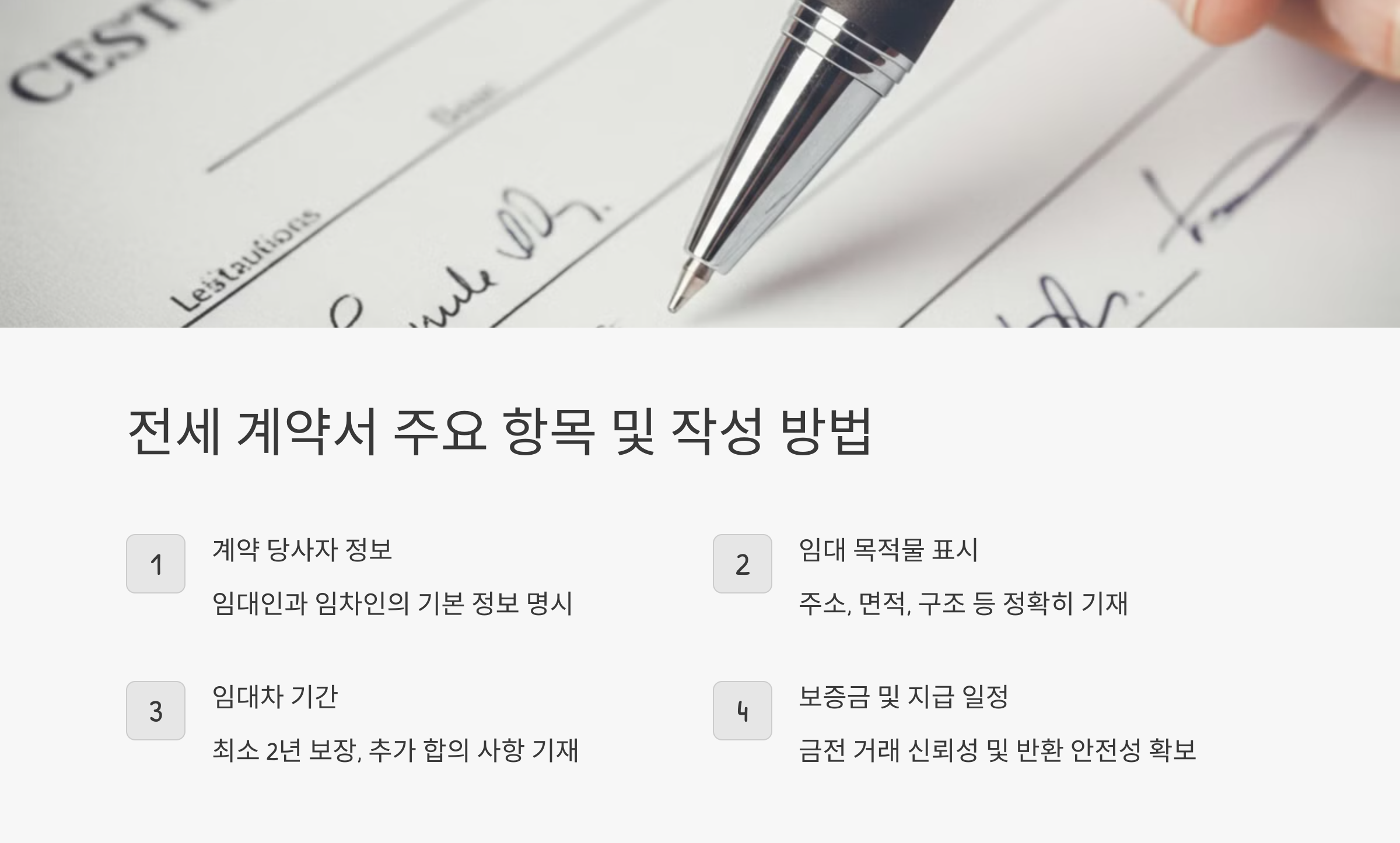 본 글에서는 전세 계약서 작성 시 필수 확인 사항, 주요 항목, 작성 방법 및 주의사항을 안내하여 안전하고 신뢰할 수 있는 임대차 계약을 체결하는 방법을 제시하겠습니다.
