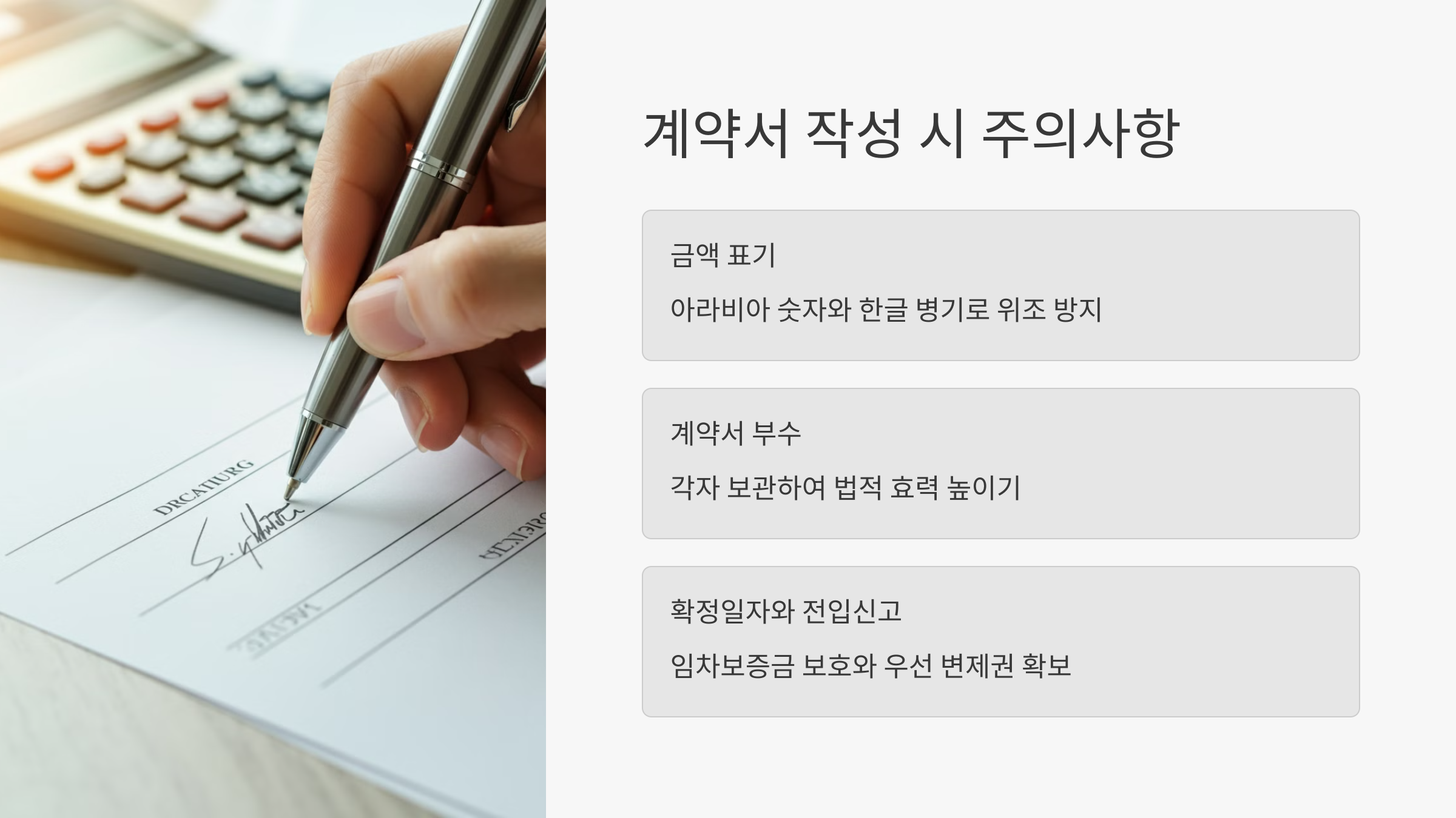 계약서 작성 과정에서 반드시 각 항목을 세심하게 검토하고 필수 확인 사항을 숙지하는 것이 중요합니다.