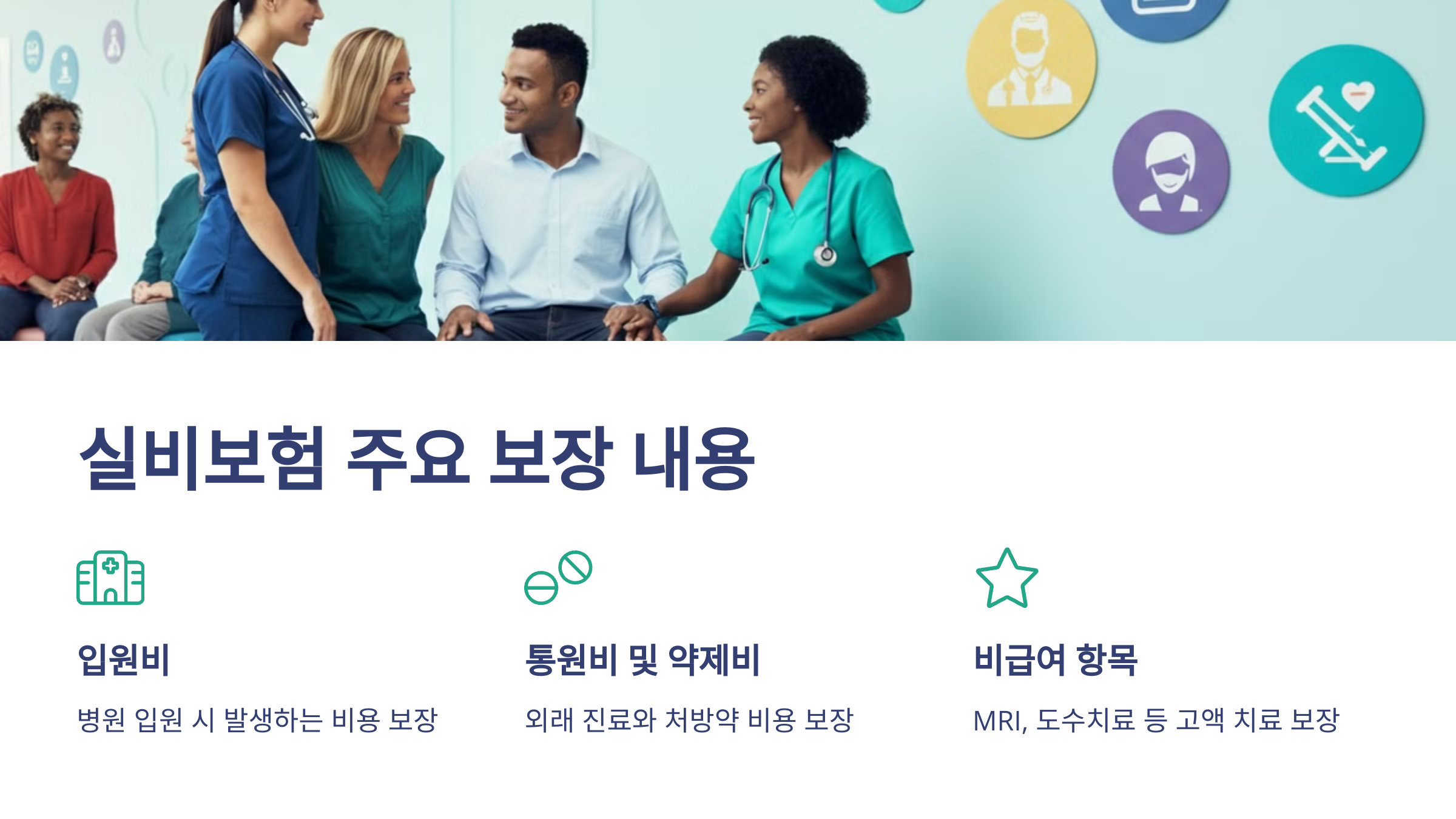 입원비, 통원비, 약제비와 같은 기본 항목은 물론, 도수치료, 비급여 주사, MRI 같은 고액 치료도 보장받을 수 있습니다.