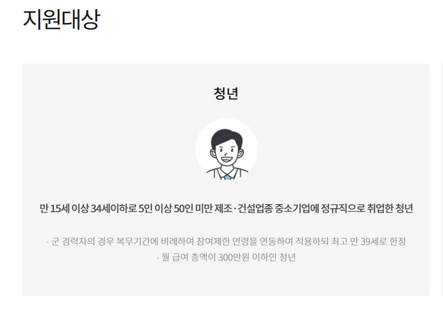 - 대상: 만 15세 이상 34세 이하, 6개월 이상 재직 중인 정규직 근로자