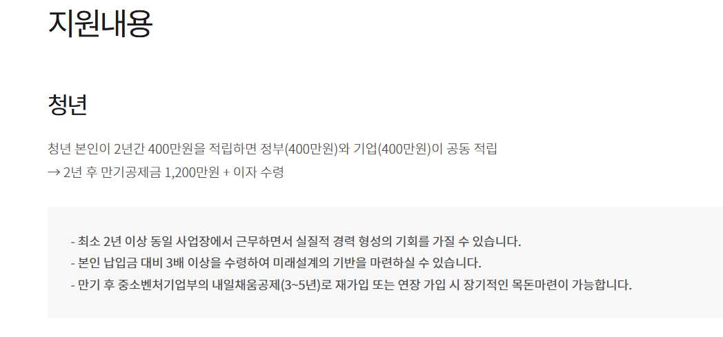 - 목적: 청년들의 장기 재직 유도 및 자산 형성 지원