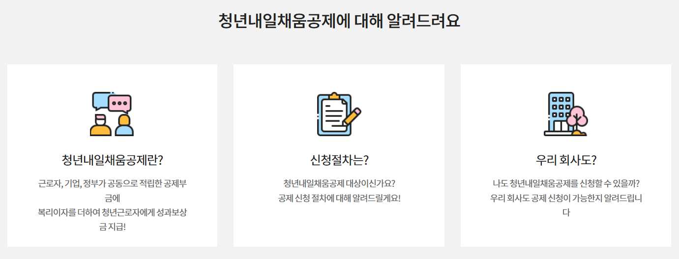청년재직자 내일채움공제 신청 시 참고할 정부 홈페이지