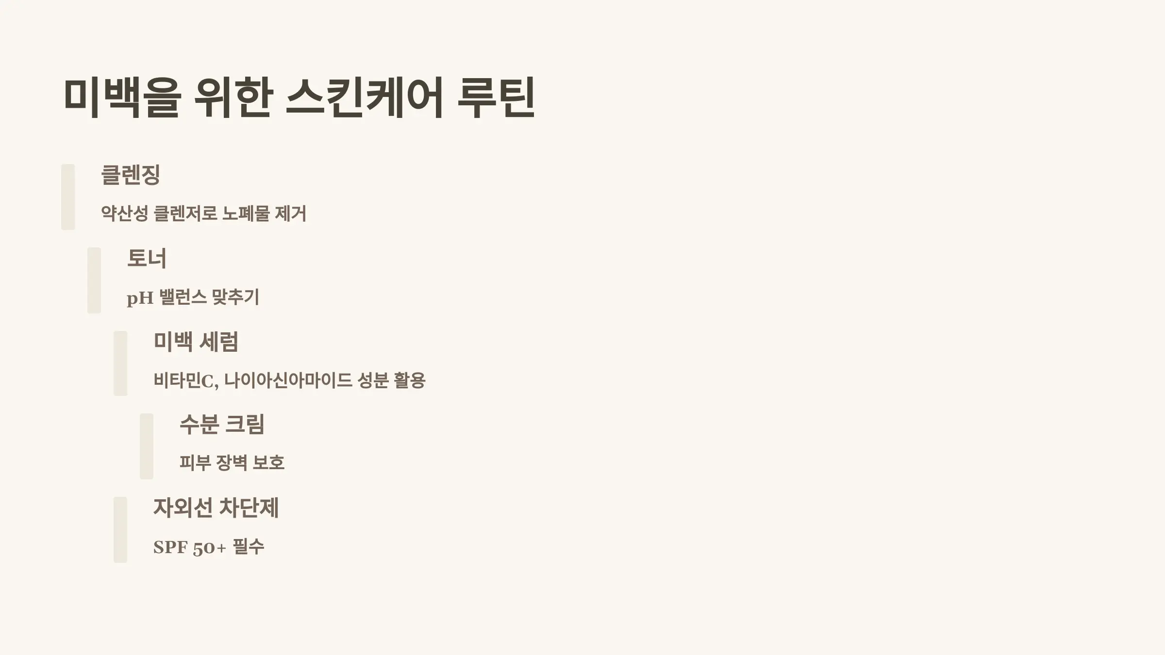 피부 미백 효과를 극대화하려면 올바른 순서로 스킨케어를 실천하는 것이 중요해요.