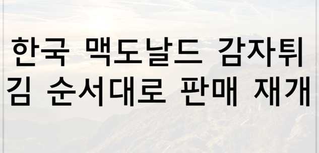 이상으로 한국 맥도날드 감자튀김 순서대로 판매 재개에 대한 글을 마무리 합니다.