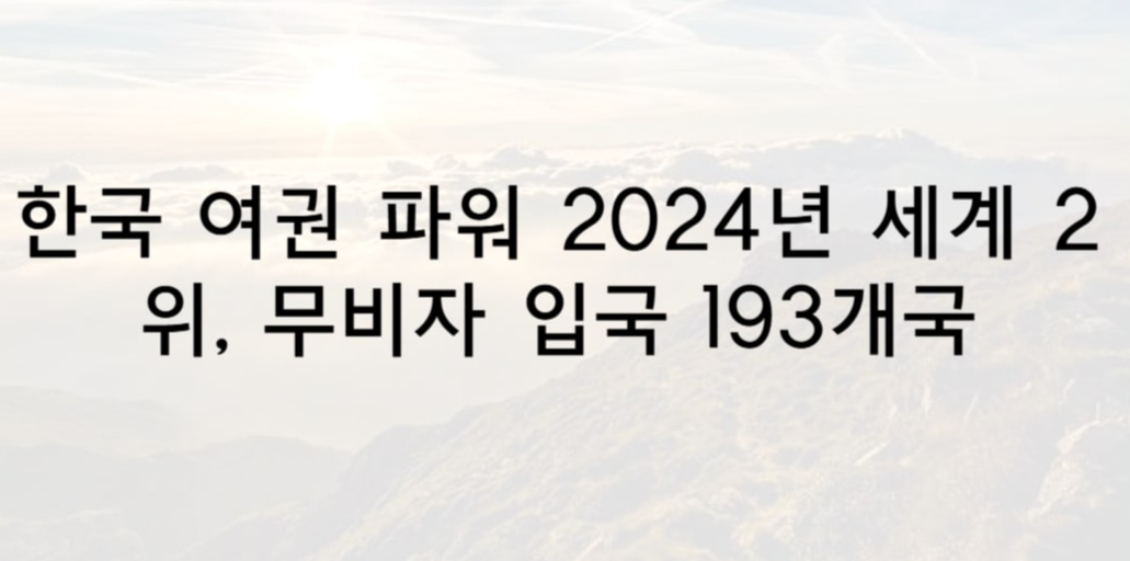 한국 여권 파워 2024년 세계 2위, 무비자 입국 193개국 에 대한 글을 올립니다. 여행의 자유는 오늘날 우리가 누리는 가장 큰 특권 중 하나입니다.