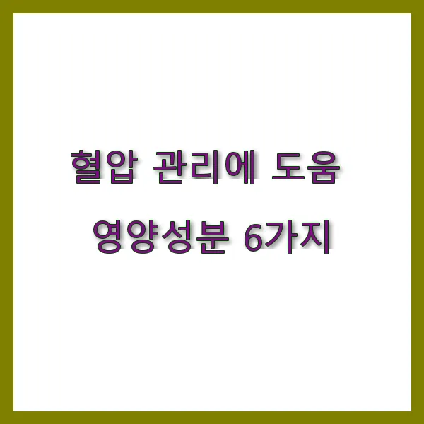 혈압 관리에 좋은 영양성분 6가지와 식단 팁까지! 고혈압 예방과 수치 안정에 도움 되는 성분과 섭취 방법을 정리했습니다.