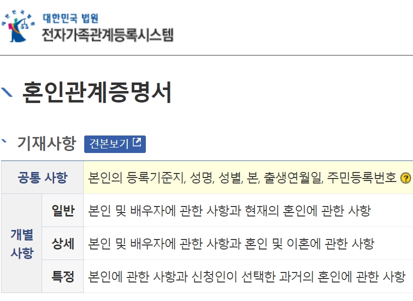 먼저, 인터넷 검색 엔진을 통해 "대한민국 법원 전자 가족관계 등록시스템"을 검색하여 해당 웹사이트에 접속합니다. 이 시스템은 법원 행정처에서 운영하는 공식 온라인 서비스로, 가족관계에 관한 다양한 증명서를 발급받을 수 있습니다. 다음의 혼인관계증명서 안내 - 대한민국 법원 사이트에 접속을 합니다.
