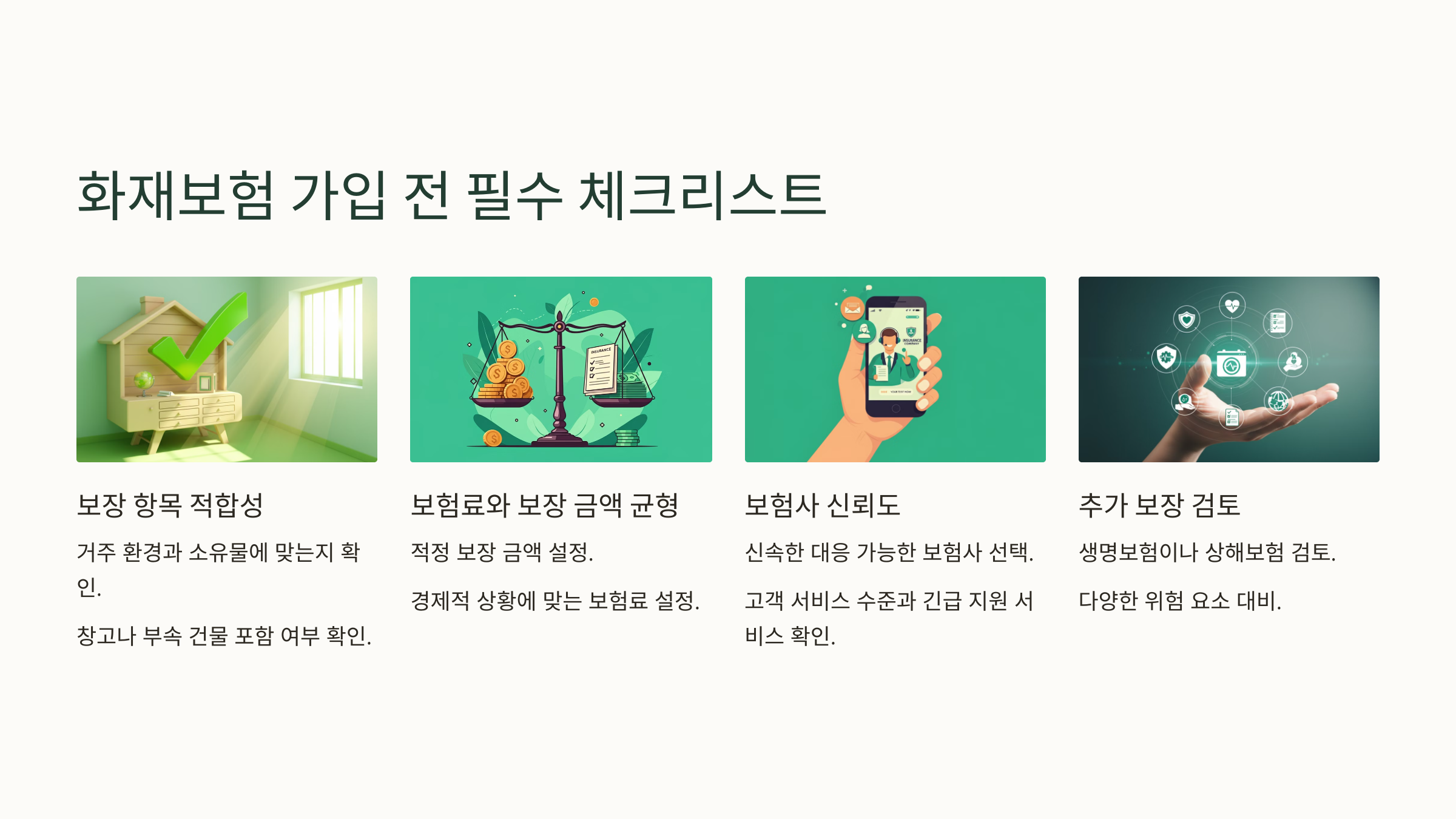 화재보험 이외에 다양한 위험 요소를 대비하고자 한다면 📌 생명 보험 가입 체크리스트 를 참고하여 본인에게 적합한 추가 보장을 설정해 보세요.