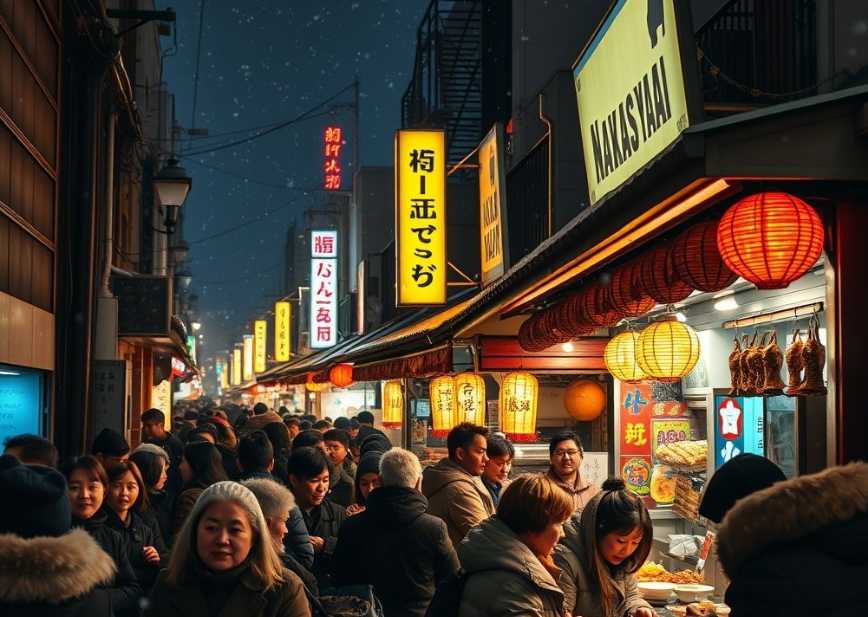 쌀쌀한 겨울밤, 후쿠오카 나카스 포장마차에서 따뜻한 음식과 함께 하루를 마무리하는 것은 잊지 못할 추억이 됩니다.