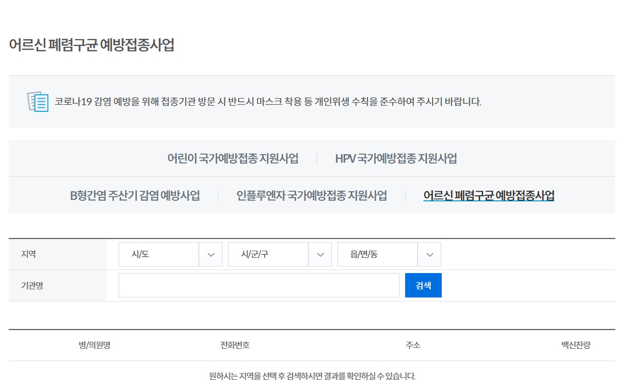 폐렴구균 예방접종은 전국의 위탁의료기관에서