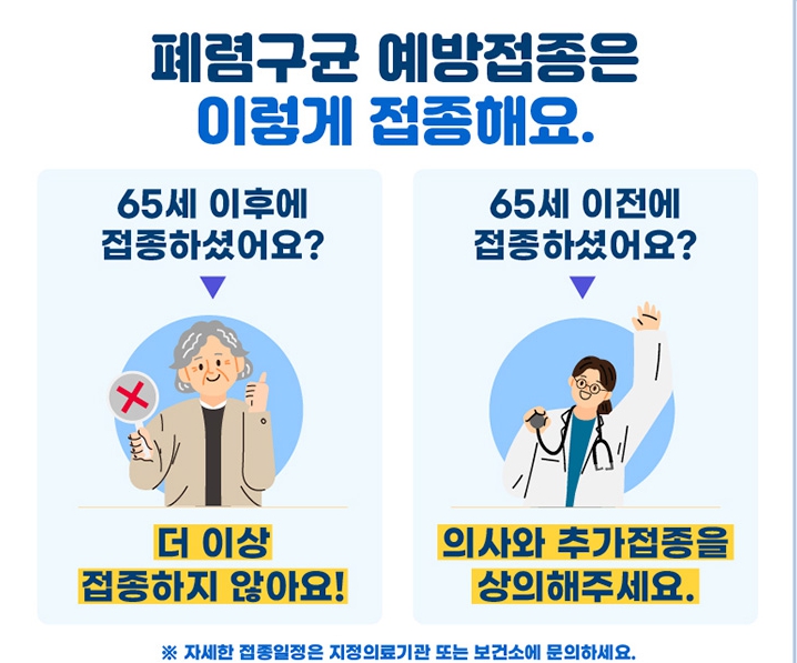 1959년생 65세 이상, 어르신들, 폐렴구균 예방접종을 잊지 마세요!