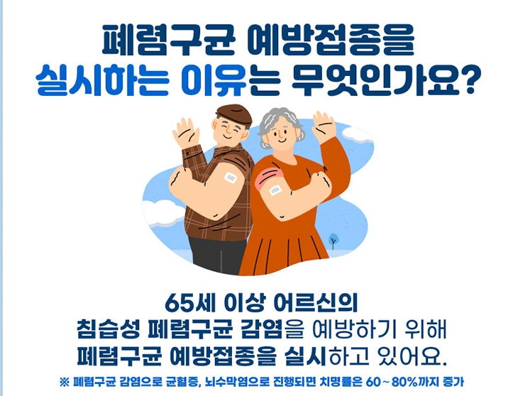 폐렴구균 예방접종은 어르신들의 건강을 위해 매우 중요한 접종입니다. 백신이 조기 소진될 수 있으니, 조속히 접종하시기 바랍니다.