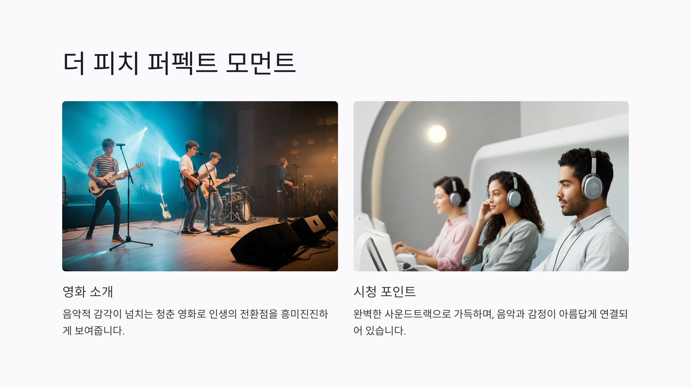 음악적 연출이 특히 뛰어나며, 다양한 장르의 음악이 청춘의 희로애락과 맞물려 감정을 자극합니다. 음악 영화나 청춘 이야기를 좋아하는 관객이라면 놓칠 수 없는 작품입니다.