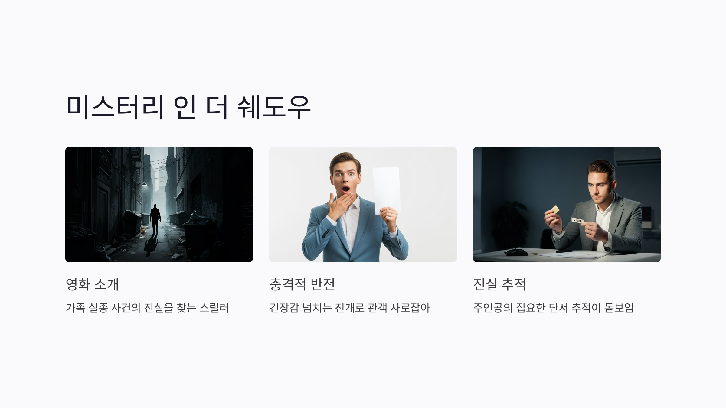 예상치 못한 반전과 숨 막히는 전개가 이 영화의 하이라이트입니다. 주인공이 수많은 단서를 통해 진실에 다가가는 과정이 긴장감 있게 그려져 반전 스릴러 장르를 좋아하는 이들에게 특히 추천할 만한 작품입니다.
