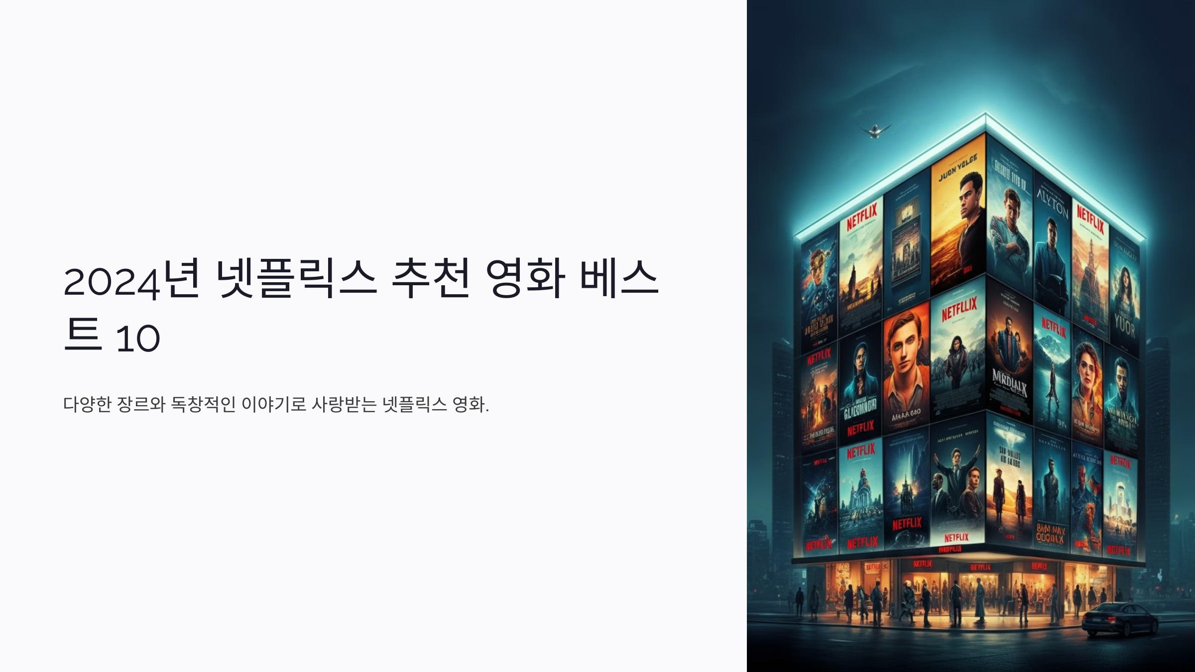 각 영화가 전하는 독특한 스토리와 시청 포인트를 참고해 나만의 영화 감상을 즐겨보세요. 넷플릭스에서 추천 영화들을 찾아보며, 2024년의 특별한 영화 경험을 만끽하시길 바랍니다.