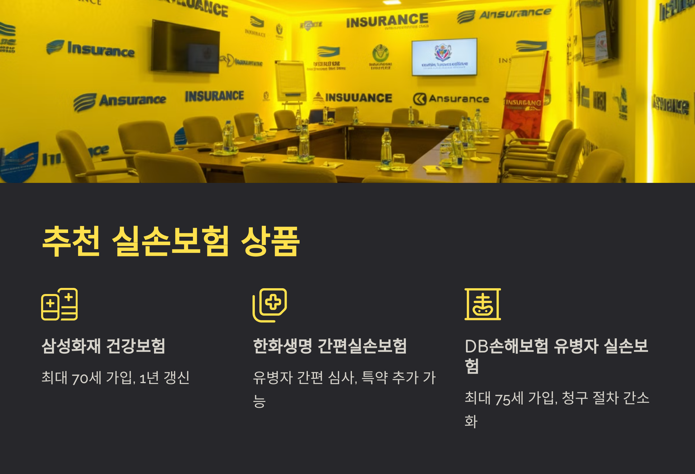 보험 상품마다 가입 연령과 건강 상태 조건이 다릅니다. 일반 실손보험 외에도 유병자 전용 상품이 따로 제공되므로 자신의 건강 상태와 연령에 맞는 상품을 선택하세요.