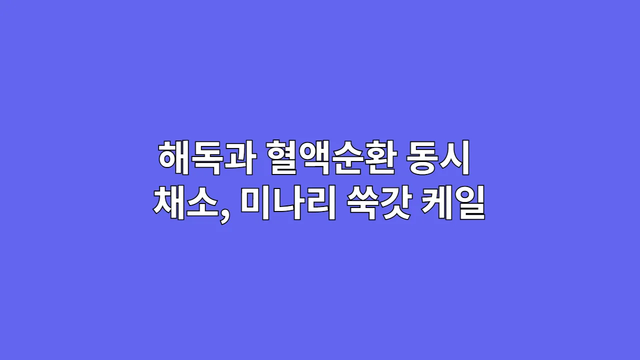 특히 특정 채소들은 간을 도와 독소를 해독하고, 모세혈관을 확장시켜 혈류를 개선하는 데 효과적이에요. 이번 시리즈에서는 그 대표 채소 3가지인 미나리, 쑥갓, 케일에 대해 집중적으로 소개할 거예요. 😊