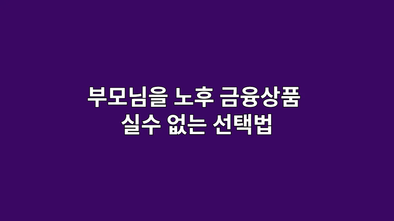 부모님을 위한 노후 금융상품 가이드 – 실수 없는 선택법